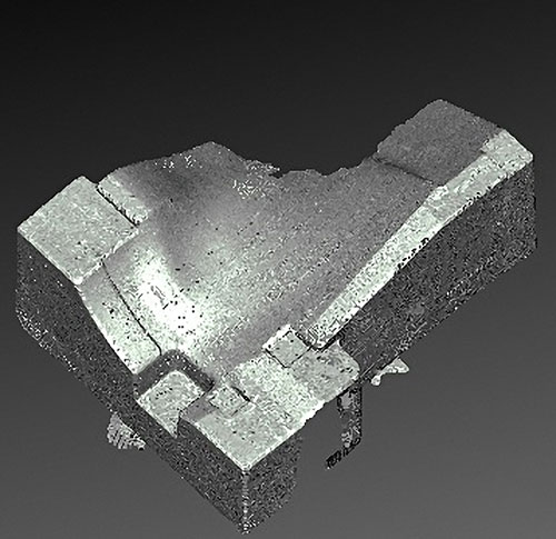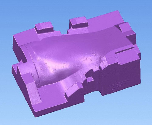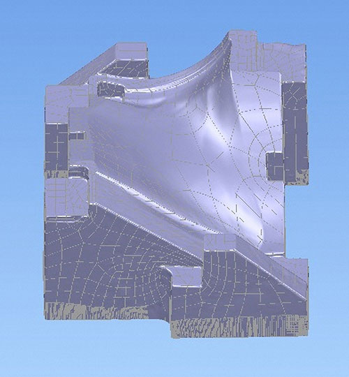 Для построения фактической 3D-модели заготовки предприятию было предложено использовать метод реверсивного инжиниринга, реализуемый при помощи CAD-системы PowerSHAPE Pro (разработка компании Delcam, www.delcam.com). Оцифровка физического прототипа может выполняться при помощи различных координатно-измерительных машин и 3D-сканеров. На основе сканированных точек строится точная фактическая CAD-модель заготовки, которая впоследствии используется наравне с 3D-моделью готового изделия для разработки управляющих программ для станка с ЧПУ. Это позволяет равномерно распределить припуск на обработку и минимизировать «резание воздуха», благодаря чему значительно сокращается время обработки на станке с ЧПУ.