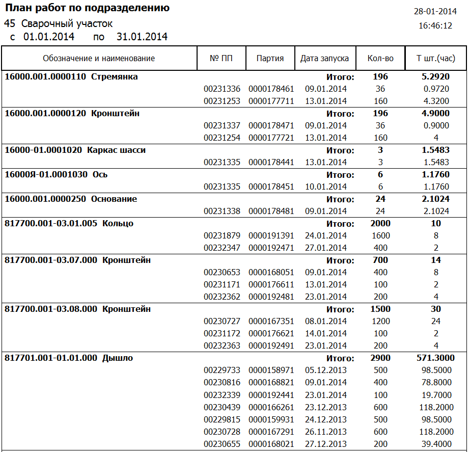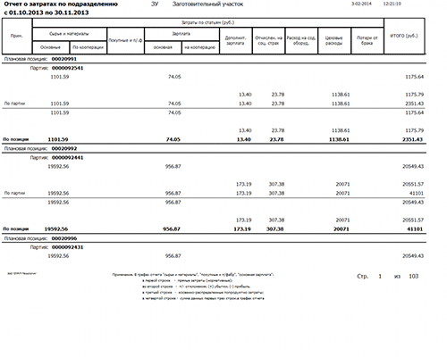 • Все виды затрат (материальные, трудовые, брак) по периодам, по подразделениям.
