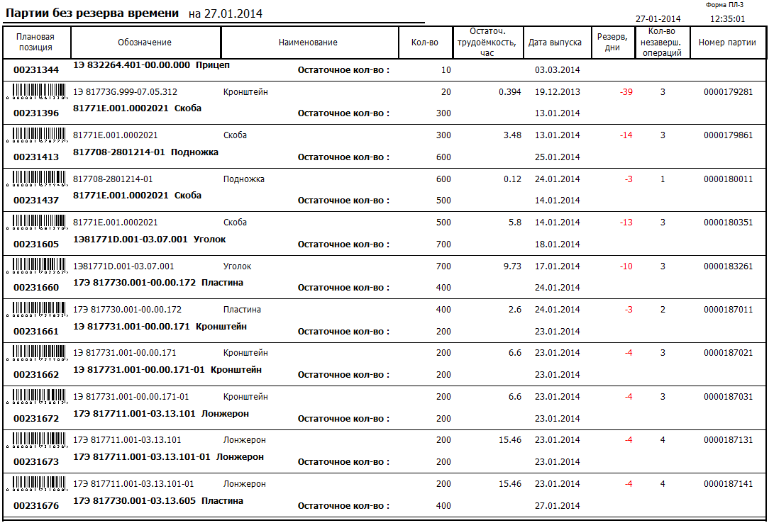 Рис. 3. Партии без резерва времени.