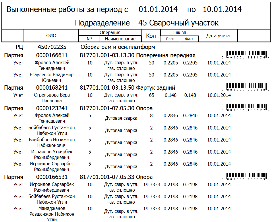 • Организовать в производстве оперативный учет выполненных работ.