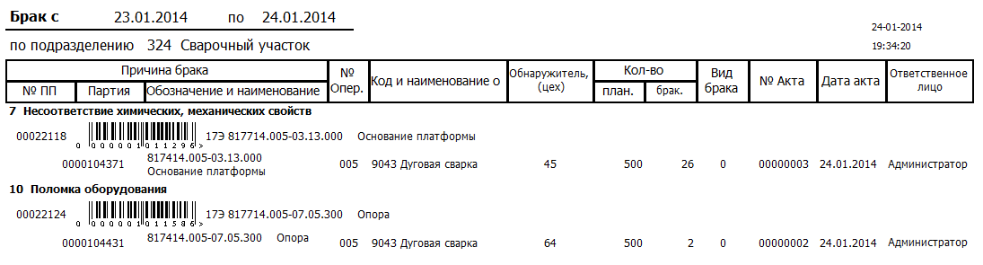 • Отсутствует фиксация всего исправимого и неисправимого брака.