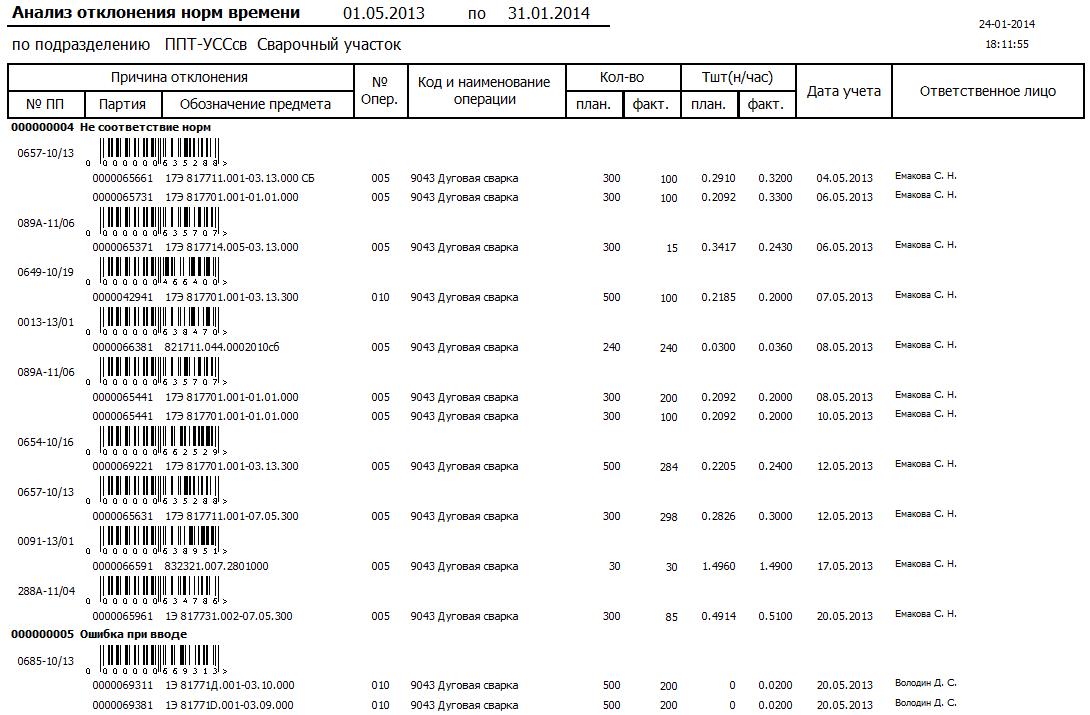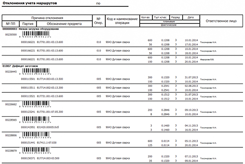 • Отклонения по Тшт — сравнение Тшт-зп и Тшт (по факту учета).