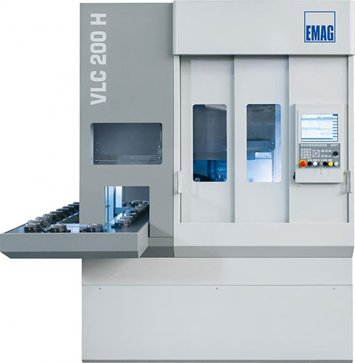 При взгляде на зубофрезерный станок VLC 200 H, становится понятно, сколь значительные технологические преимущества он открывает для своих пользователей также и в автономном исполнении. На станке установлены мощные приводные двигатели, обеспечивающие высокие частоты вращения главного шпинделя и фрезы. За счет этого обеспечивается возможность максимально быстрой обработки без Сож шестерен диаметром до 200 мм и модулем до 4. Удаление образующейся при этом горячей стружки в станке вертикальной компоновки осуществляется без каких-либо проблем. После падения они попадают в транспортер для удаления стружки. Кроме того, типовая для компании EMAG компоновка станков «Pick-Up» обеспечивает минимизацию вспомогательного времени. Рабочий шпиндель забирает деталь с ленты транспортера, перемещает ее к задней бабке, где она очень крепко фиксируется фланцем задней бабки, а после зубофрезерования забирает обработанную деталь из рабочей зоны. Эта концепция встроенной системы автоматизации обеспечивает не только быстроту обработки, но и гарантирует высокий коэффициент использования оборудования.
