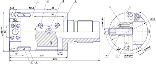 Рис. 1. Эскиз расточной головки для обработки глубоких отверстий в деталях типа тел вращения.