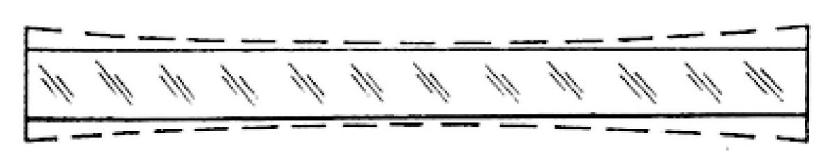 В случае необходимости получения полированной поверхности с минимальными отклонениями поверхности от плоской формы возникают следующие трудности. Известно, что при длительном полировании поверхности, даже с использованием достаточно жестких полировальных материалов, на стадии предварительного полирования происходит более интенсивный съем материала на краях деталей, в результате чего после полирования плоской исходной шлифованной поверхности получают выпуклую поверхность (рис. 4а). Если же после шлифования получаем пластину с вогнутой поверхностью (рис. 4б), то после полирования за счет «заваливания» краев плоскостность улучшается и достигает минимальных отклонений от идеальной плоской поверхности.
