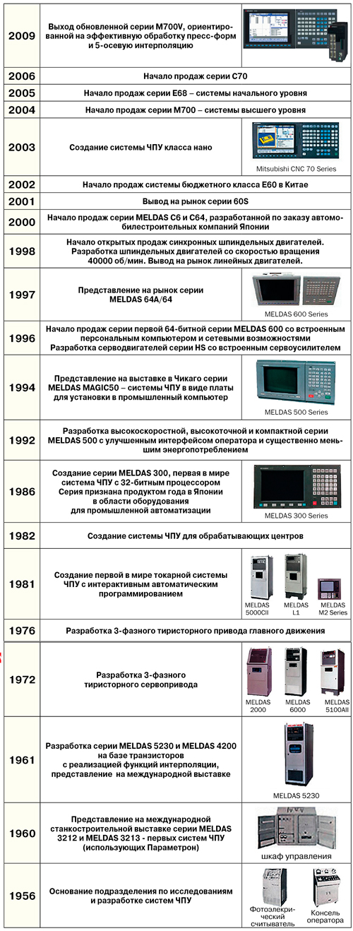 Во всем мире компания Mitsubishi Electric широко известна, как один из крупнейших производителей систем ЧПУ и электроприводов для станкостроения. Несмотря на то, что большую часть продукции ЧПУ Mitsubishi Electric производит в рамках OEMконтрактов для крупнейших мировых производителей станков, номенклатура систем ЧПУ и электроприводов, выпускаемых под торговой маркой, не менее обширна и впечатляет своими техническими показателями.
