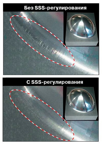 SSS регулирование (Super Smooth Surface) представляет собой сложный алгоритм регулирования, позволяющий достичь радикального улучшения качества поверхности при одновременном снижении времени обработки за счет: