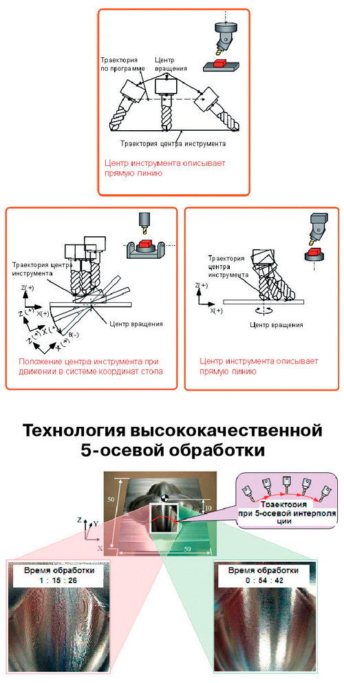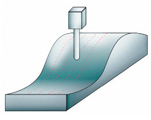 Управление положением инструмента осуществляется таким образом, чтобы центр инструмента описывал прямую линию, обеспечивая тем самым лучшее качество обработки поверхности.