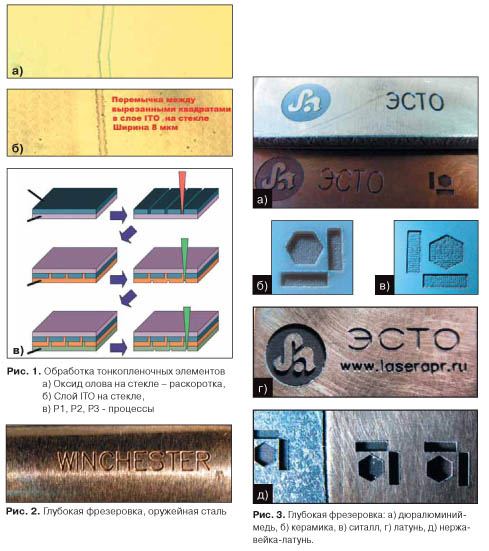 Технологии, связанные с обработкой тонкопленочных элементов, применяются в электронике при производстве ЖК и плазменных панелей, сенсорных экранов, солнечных элементов. Системы с маломощными волоконными лазерами также с успехом реализуют задачи по их обработке. Внедрение лазерного оборудования позволяет достичь, в частности, существенно большей точности по сравнению с механическим скрайбированием (независимо от того, насколько сложной является форма), а также снижения стоимости и увеличения производительности по сравнению с процессами литографии.