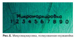 В приведенном на рис. 2 примере длина надписи — 15 мм, ширина пазов 0,3 мм, глубина пазов 0,33 мм. Выемка чистая, отбортовка по периметру пазов практически отсутствует. При этом нет необходимости в поддуве какоголибо газа.