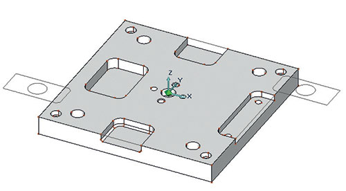 Итак, рассмотрим сквозной процесс подготовки производства с ЧПУ на простом примере. Нам потребуется 3D-модель детали и, если это необходимо, то еще и контуры или модели прижимов (рис. 1).