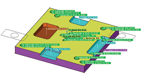 При обычном программировании технологических операций и переходов технолог должен вручную указывать все обрабатываемые контуры и поверхности, а также все контрольные контуры и поверхности. При работе с моделями, состоящими из сотен и тысяч поверхностей, подобный процесс становится сверхтрудоемким.