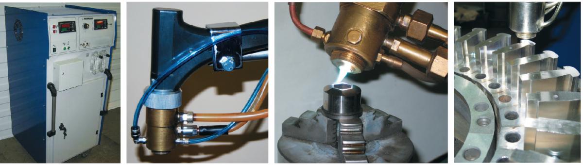 Рис. 10. Комплекс основного оборудования для микроплазменного напыления и вид плазменной струи.