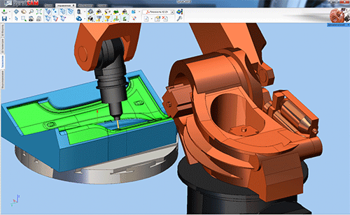 Реализация фрезерных многоосевых стратегий обработки, кинематических схем и постпроцессоров в SprutCAM позволяет программировать фактически любые роботы. Уже сегодня в SprutCAM программируются промышленные роботы Kuka, Fanuc, Staubli, ABB.