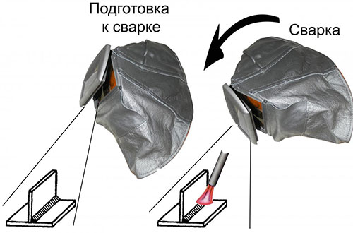 Маска-дублер значительно облегчает работу сварщика в стесненных условиях.