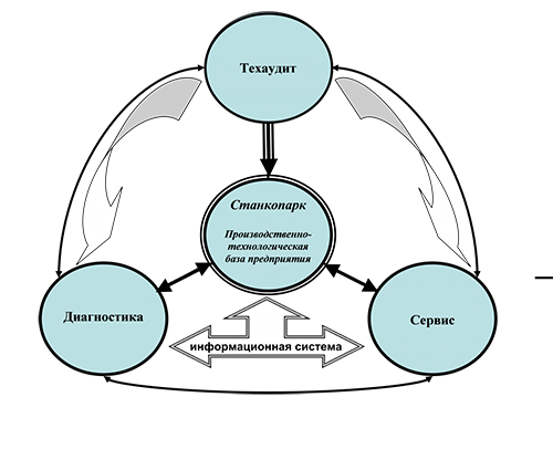 Актуальными задачами обновления/обслуживания станкопарка является: техаудит > безразборная диагностика оборудования > сервис-поддержка техники. Рассмотрим эти взаимодействующие компоненты подробнее (рис. 2).