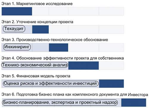 - Адаптация проекта с учетом отраслевой специфики и производственных особенностей конкретного предприятия. Как правило, импортные решения «плохо ложатся» на российскую технологическую инфраструктуру – они эффективны лишь при «нулевом» цикле создания производств. Симбиозные решения «вживления» зарубежных инноваций в существующие производства, как правило, не дают системного эффекта.