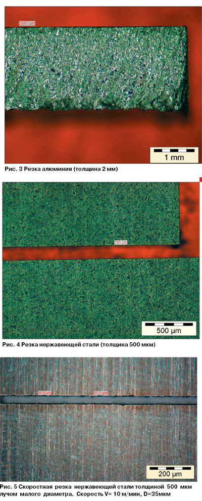Лазерная резка листовых материалов, как самая распространенная технологическая операция, долгое время оставалась примерно на одном качественном уровне. По специфике применяемого лазерного оборудования резка металлов разделилась по толщине: от 1 мм и выше – это в основном мощные СО2 лазеры; от 100 мкм до 1 мм – импульсные твердотельные лазеры на АИГ; до 100 мкм – непрерывные лазеры на АИГ с модуляцией добротности. Сейчас для резки металлов, особенно свыше 1 мм, ведущую роль начинают занимать волоконные лазеры, однако их малая распространенность в производстве не позволяет пока говорить об окончательной победе над традиционными лазерными системами.