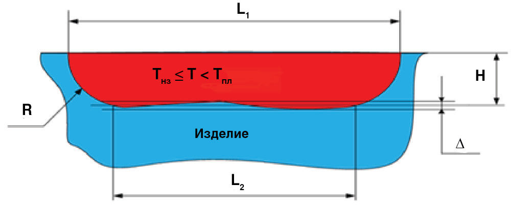 Наши металловеды с учетом накопленных знаний и опыта определяют, какие структурно-фазовые изменения необходимо осуществить в поверхностных слоях и какие технологические режимы (температурное поле, термический цикл нагрева-выдержки-охлаждения) необходимо реализовать, чтобы упрочняемая поверхность отвечала требованиям чертежа. Причем температурное поле и соответственно форма упрочненной дорожки в поперечном сечении должны иметь максимально равномерную глубину и твердость по ширине дорожки (рис. 11).