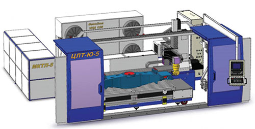 Рис. 3. Лазерный технологический комплекс ЦЛТ-Ю-5 для упрочнения поверхностей крупногабаритных деталей сложной формы.