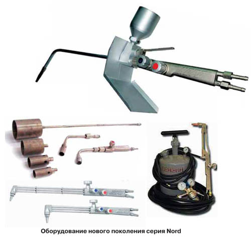 При выборе оборудования для процессов пайки, газотермического напыления, нагрева или огневой очистки температура, окислительная способность и жесткость пламени не имеют существенного значения. В процессах нагрева и огневой зачистки температура нагрева металла обычно не превышает 200 – 4000С, а при высокотемпературной пайке – 8000С. Что позволяет активно использовать в качестве горючего пропанбутан, метан или природный газ. В последнее время активно внедряется оборудование, позволяющее получать водороднокислородную смесь. Например, электролизноводные установки ООО «РОАР» положительно зарекомендовали себя при пайке и нагреве деталей небольших размеров.