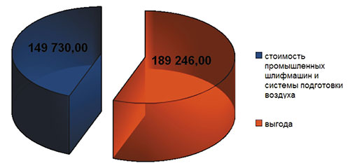 Вариант 2. Производственный участок, 4 рабочих места, на каждом – промышленная пневматическая бормашина ARCHIMEDES, система подготовки воздуха. Подставим розничные цены на тот же период.