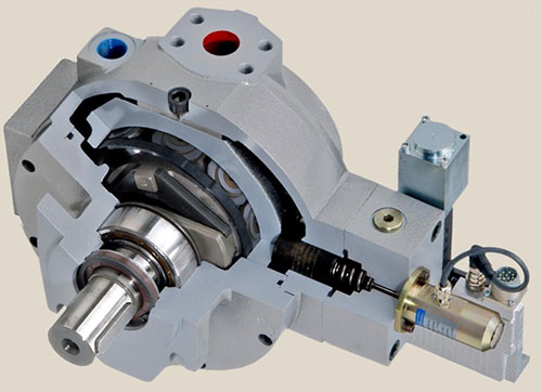 Использование «скользящего» статора позволило существенно увеличить срок службы насоса, а оптимизация геометрии каналов и расположения 9-ти поршней — снизить шум. Насосы могут работать на различных рабочих жидкостях (РЖ), в том числе на эмульсиях HFC и HFD, а также иметь тандемные связки из нескольких машин с монтажными поверхностями SAE-A, -B или -С. Наличие датчиков эксцентриситета статора (расхода Q) и давления р позволяет встроенной системе электронного управления выполнять функции регуляторов давления, подачи или мощности. При этом обеспечиваются высокая гибкость управления, удобный пользовательский интерфейс и реализация дистанционного управления на основе интернет-технологий. Предусматривается также возможность аналогового управления от стандартных промышленных сетей; обеспечивается Plug&Play-принцип — замена насоса без специальной настройки программного обеспечения.
