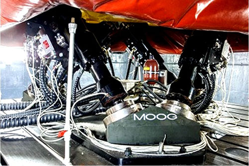 Высокодинамичные электрогидравлические платформы-гексаподы (рис. 8) грузоподъемностью до 680 кг способны отрабатывать частоту управляющего воздействия до 100 Гц и находят применение в тренажерах, испытательных стендах, аттракционах и других случаях.
