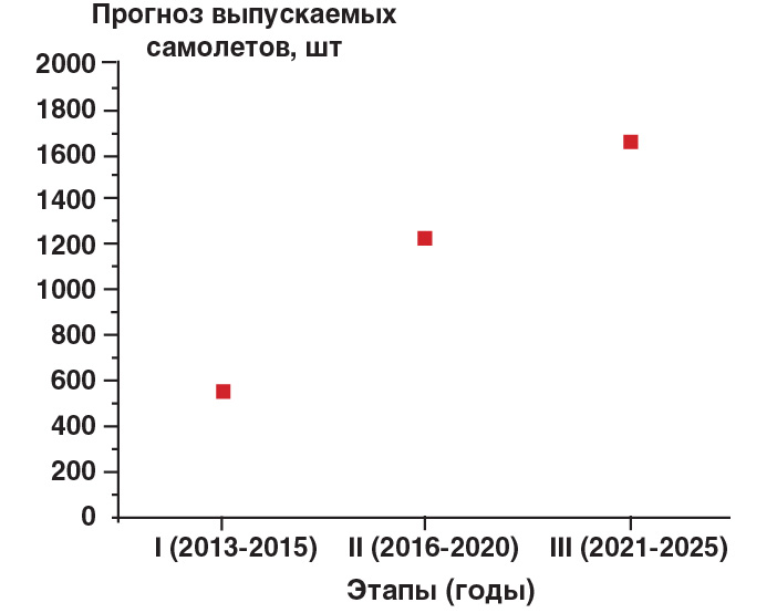 Рис. 1. Прогноз поставки самолетов по этапам (годам).
