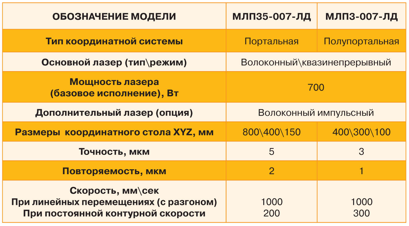 Отличительная особенность машин серии МЛП3 – использование новейшей компонентной базы: волоконных лазеров и кинематических систем собственной разработки на основе прямого преобразования электромагнитной энергии в механические перемещения (с дискретом 0,1 – 1 мкм), систем управления последнего поколения.