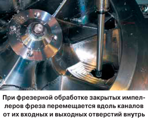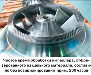 Сегодня фрезерная обработка в том числе и больших диаметров становится все более привлекательной. При фрезерной обработке импеллеров все линейные оси и оси вращения перемещаются симультанно, чтобы следовать за поверхностями, сформированными с точки зрения газогидродинамики. Этот симультанный процесс обусловливает непрерывное ускорение или замедление всех участвующих осей, что выдвигает на передний план динамику перемещения.
