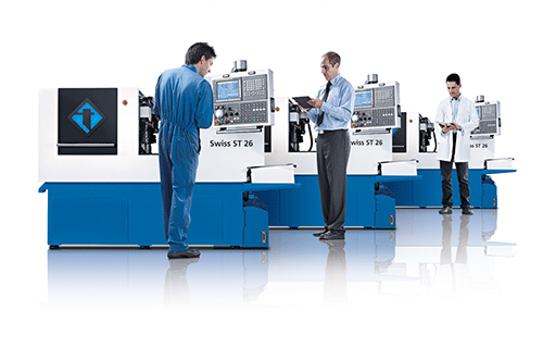Swiss ST 26 Сержа Виллара: «Эта модель сконструирована для производства различного типа деталей, особенно для отраслей автомобилестроения и медицины. Специально разработанная кинематика станка вместе с синхронным шпиндель-мотором повышают эффективность оборудования на 30% по сравнению с 5-ти, 6-ти осевыми станками основных конкурентов».