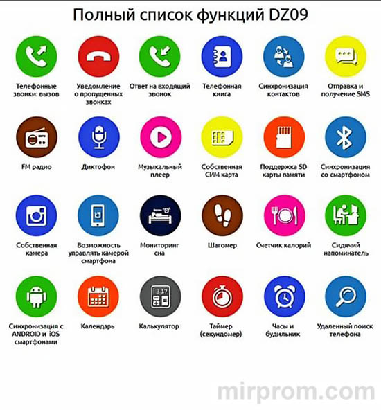 Описания основываются на настройках по умолчанию Smart Watch Phone DZ09.