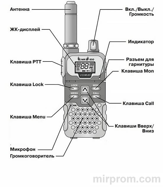 Данная радиостанция снабжена специальным разъемом для гарнитуры 2,5 мм, который расположен с противоположной стороны от клавиши PTT.