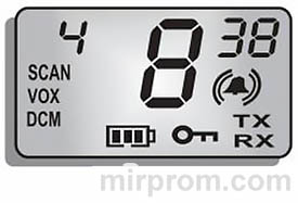 Уровень чувствительности VOX отображается на дисплее. На максимальном уровне чувствительности радиостанция будет передавать даже фоновый шум, а на минимальном - только относительно громкие звуки.