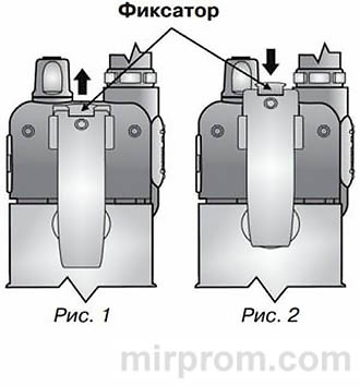 Вставьте крепление в направляющие, как показано на рис. 2, и задвиньте до щелчка фиксатора.