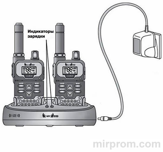 с. Установите радиостанции на зарядное устройство вертикально как показано на рисунке. Индикатор зарядки загорится.