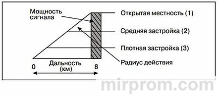 Радиус действия определяется местностью и зависит от мощности передачи сигнала.